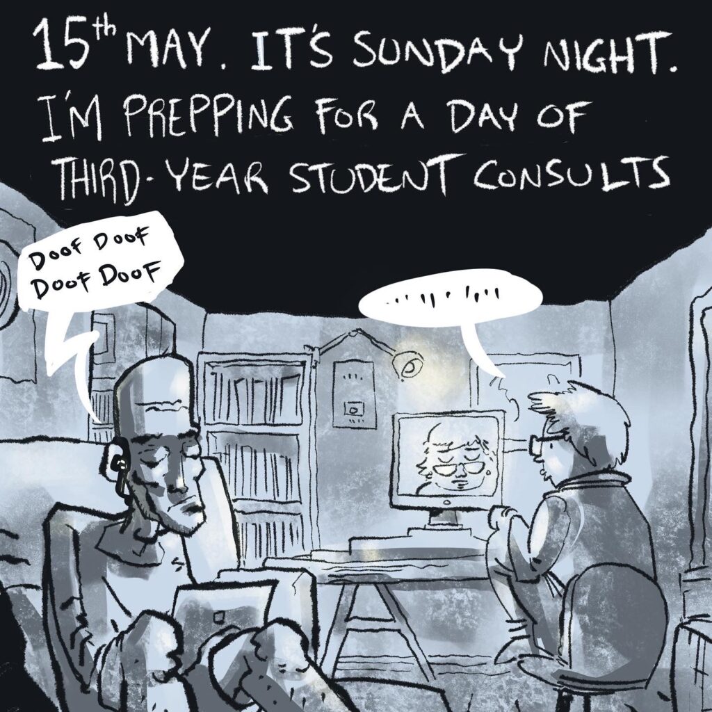 This comic is about a moment that you’d call in narrative storytelling an ‘inciting incident’. It’s an event that caused a huge chain of dramatic changes in my life that fundamentally altered my reality. My wife’s father was diagnosed with stage 4 lung cancer in 2021, and from that time we had thought about relocating to be closer, and sometime in 2022 started looking for jobs and fellowships in Europe. This was all brought forward unexpectedly when we received the call- come now, the end is soon. What followed was months of the most challenging times I’ve had in the last decade that are only starting to settle now.